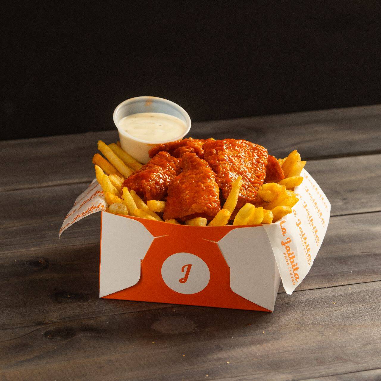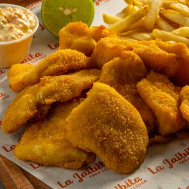 180gr de Chicharrón de Pescado acompañado de papas fritas y aderezo Ranch