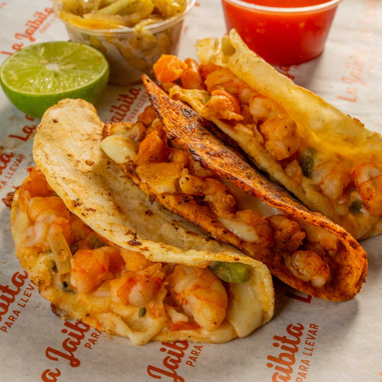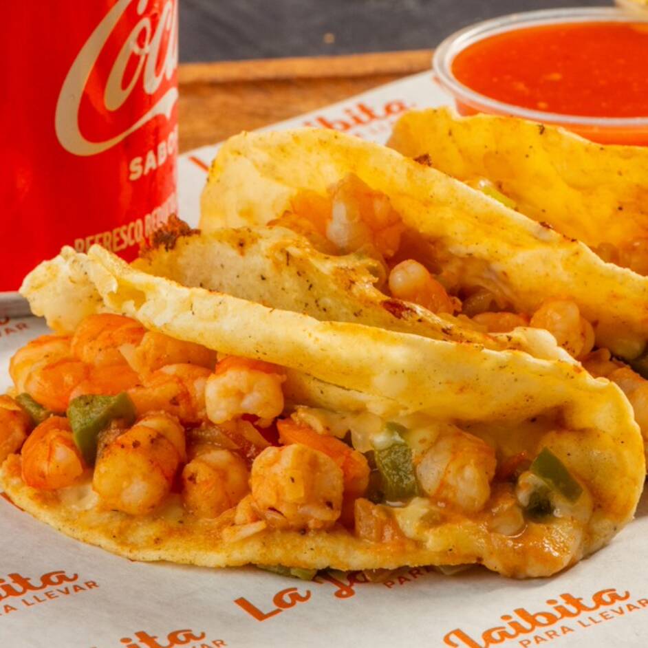 3 Tacos a elegir y refresco. Elige entre taco gober (machaca de camarón gratinado en tortilla de maíz) o chipotle (machaca de camarón chipotle, gratinado con tortilla de maíz adobada en chipotle) acompañado de limón, cebolla asada y salsa picante.