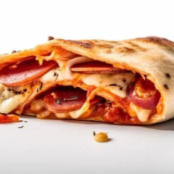 Delicioso burrito relleno de salsa ragú, pepperoni, queso manchego acompañado de papas a la francesa
