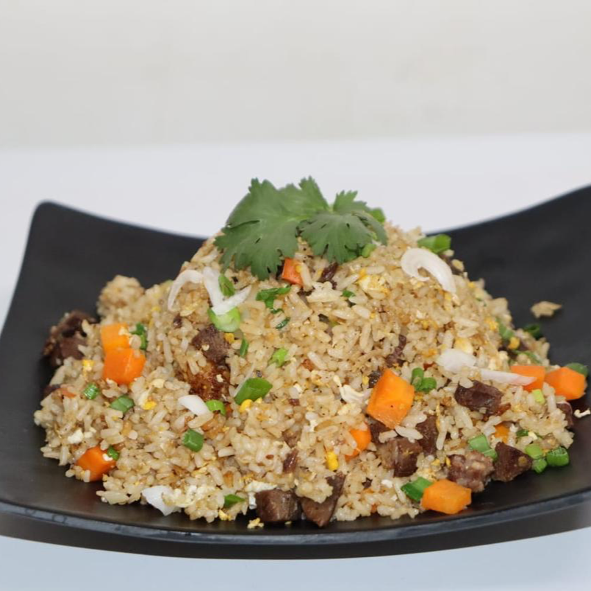 Ricas rebanadas de carne de res, huevo, col, elote y cebollín.
