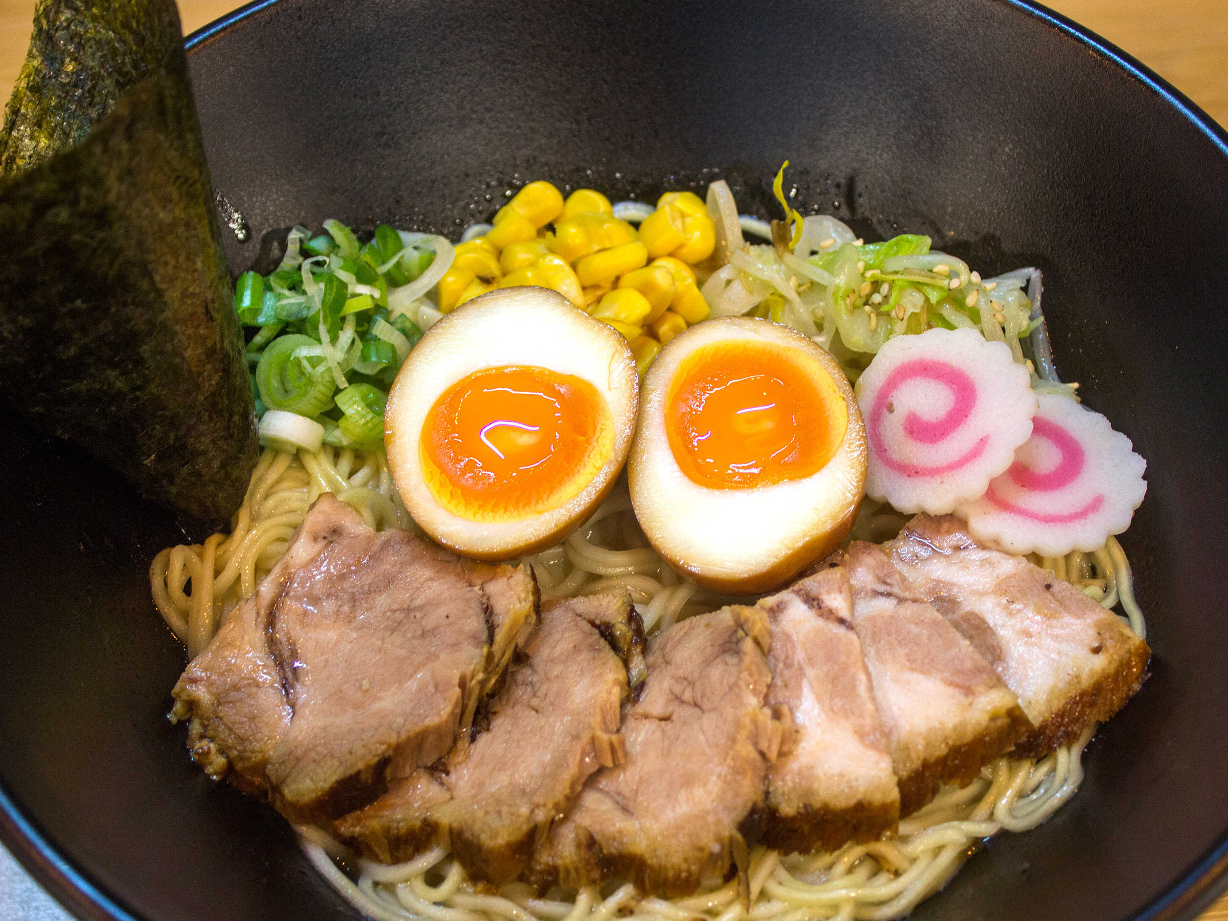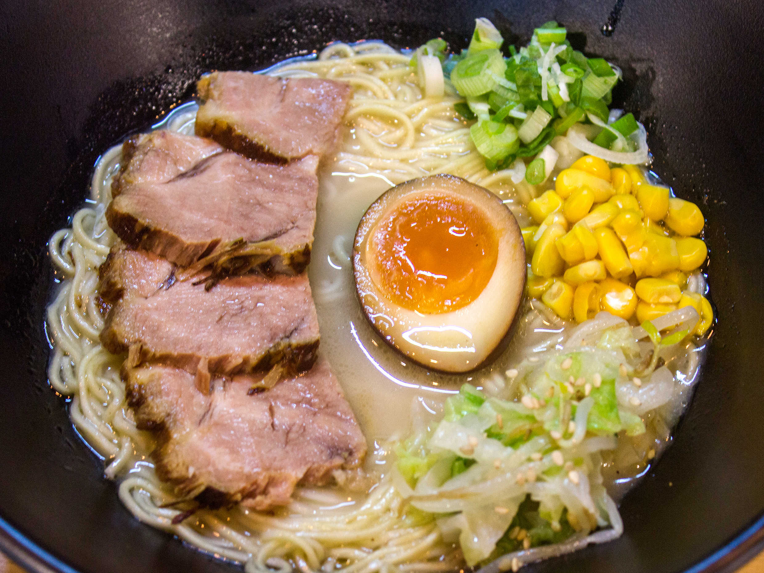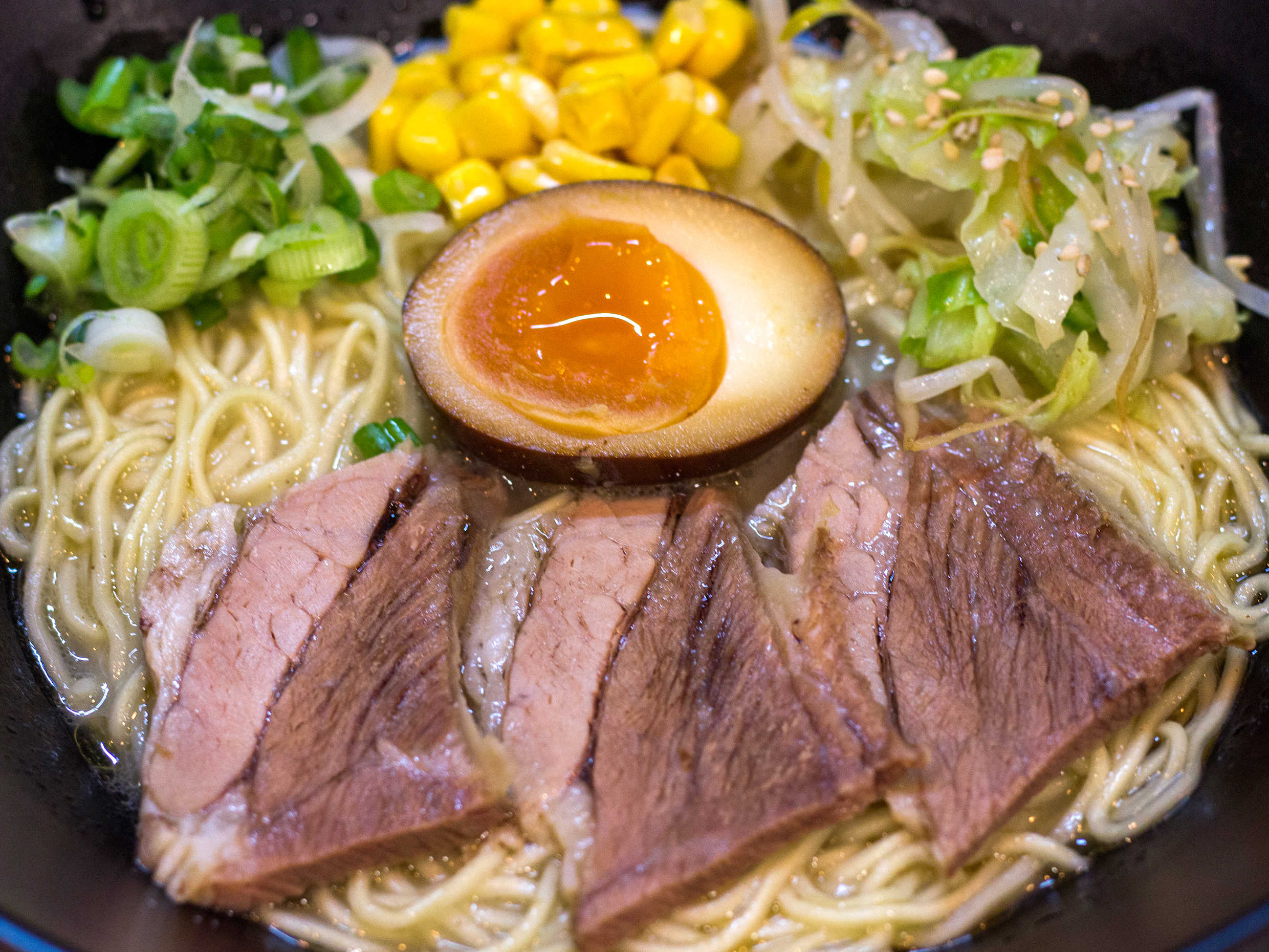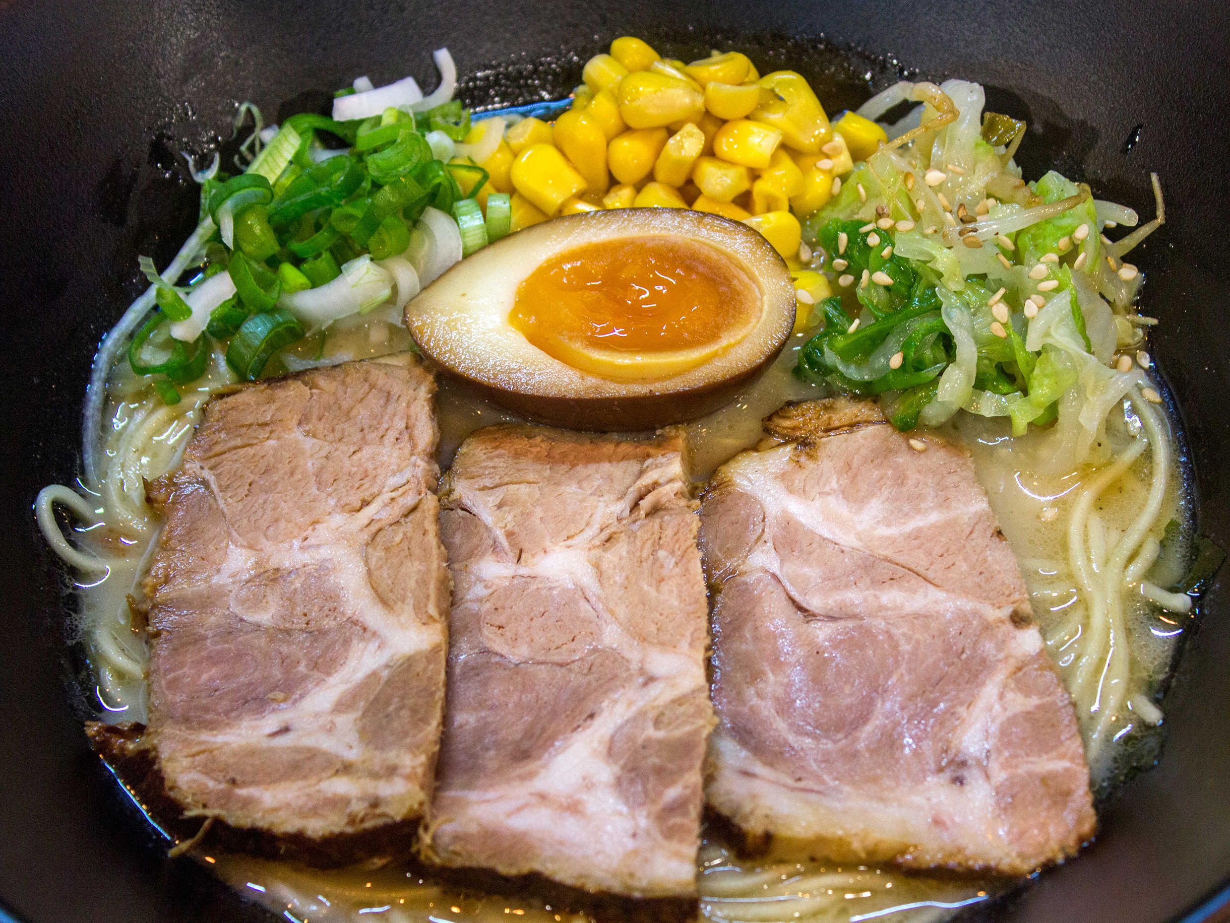 Deliciosas rebanadas de lomo de cerdo marinado a salsa de especias, huevo pre cocido, cebolla cambray y lechuga napa.