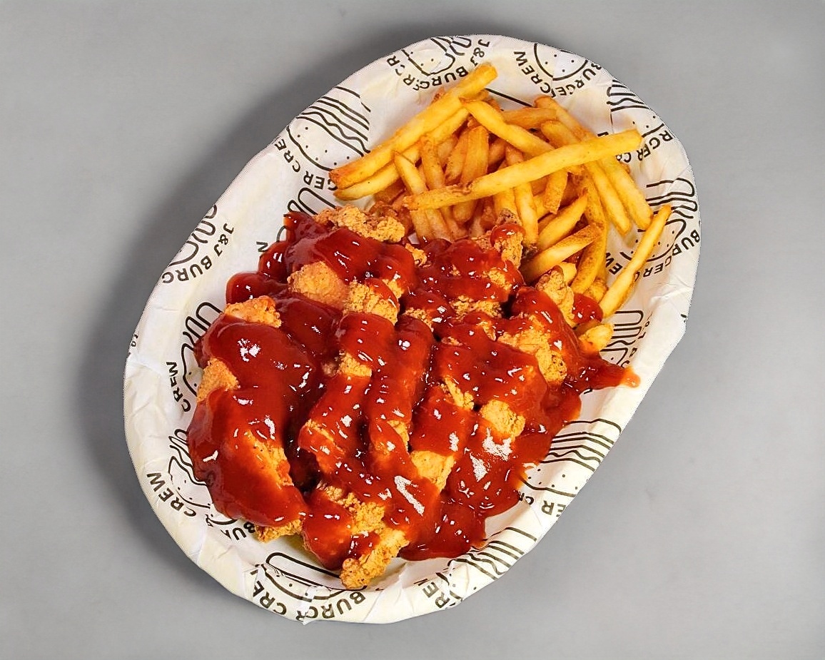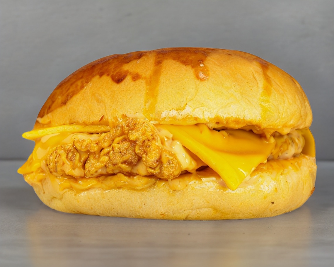 PECHUGA DE POLLO EMPANIZADO, QUESO AMARILLO AMERICANO CON ADEREZO KECHIPOTLE., INCLUYE PORCION DE PAPAS A LA FRANCESA.