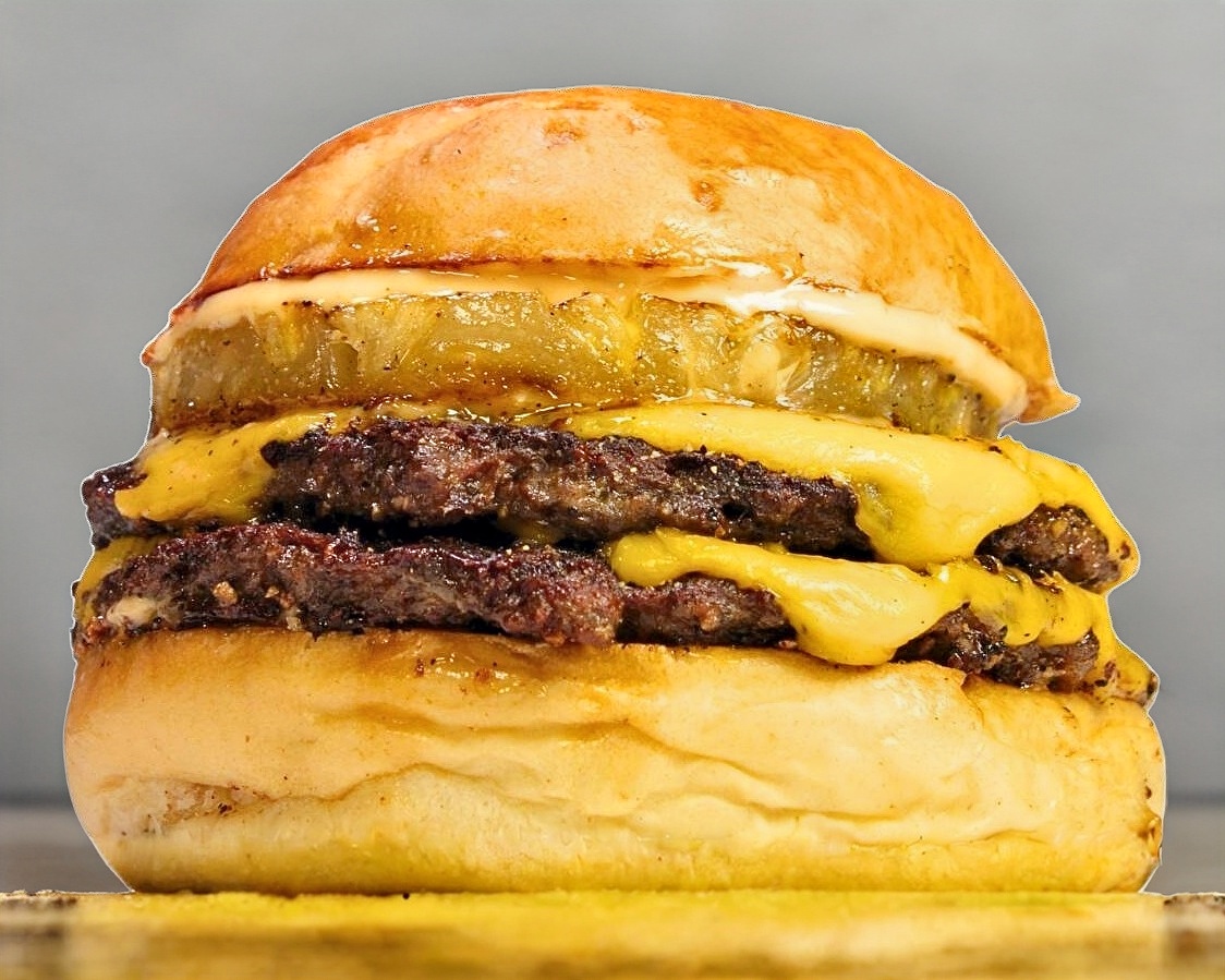 Rodajas de piña en almíbar, carne de res, queso amarillo americano y nuestro aderezo kechipotle, incluye porción de papas a la francesa.