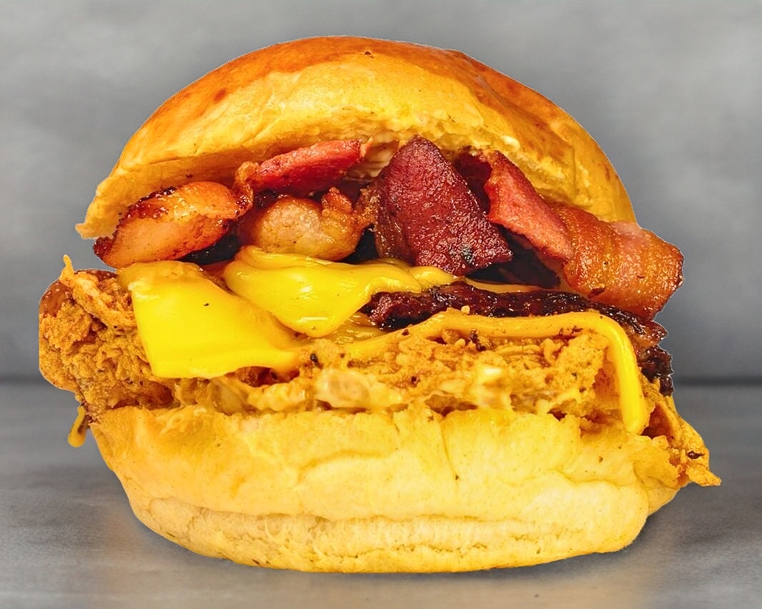 ORA' SI QUE TODOS LOS ANIMALES CARNE DE RES, TOCINO, PECHUGA DE POLLO EMPANIZADA, QUESO AMARILLO AMERICANO Y NUESTRO ADEREZO KECHIPOTLE, INCLUYE PORCION DE PAPAS A LA FRANCESA.