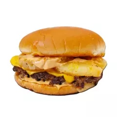 Hamburguesa con carne de res, queso amarillo y nuestro aderezo Honey Mustard.