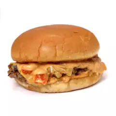 Carne de res, queso, mezcla de champiñones, pimiento rojo y queso derretido, incluye porción de papas a la francesa.