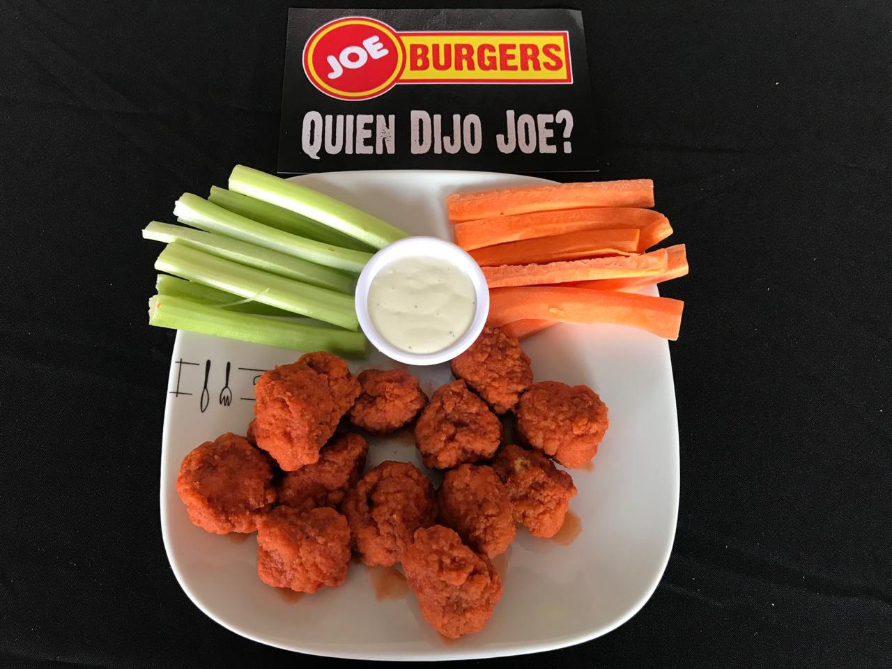 Deliciosos trozos de pechuga de pollo banadas en cualquiera de nuestras Joe secret hot sauces.