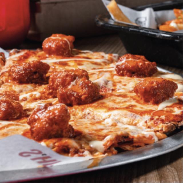 Salsa pomodoro, boneless bañados en salsa Buffalo, aderezo ranch y queso parmesano.