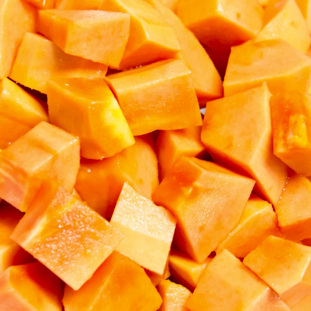 Mango, fresa, manzana, melón, papaya, piña, plátano y miel.
