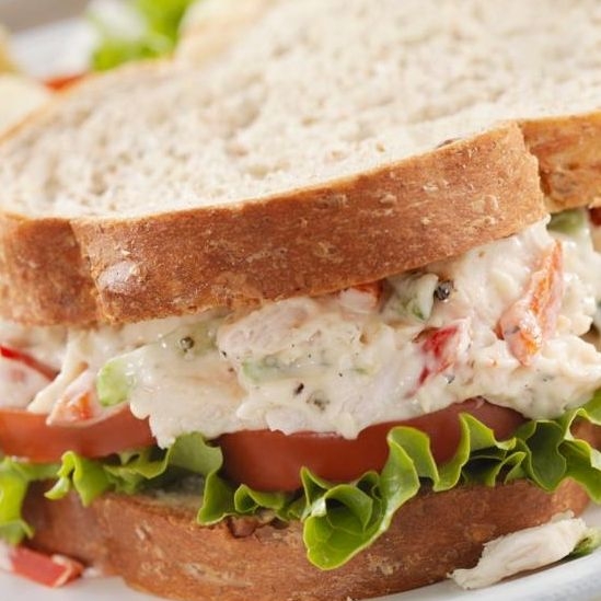 Ensalada de Pollo (mayonesa, papa y zanahoria), Lechuga en Pan Integral