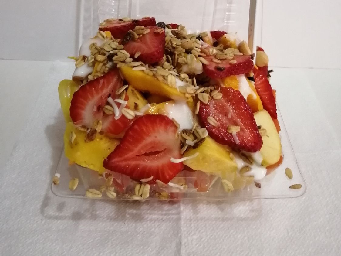 PAPAYA, PLATANO, MELON, PIÑA, FRESA, MANZANA, MANGO, YOGOURT NATURAL, GRANOLA, NUEZ, ALMENDRA Y MIEL