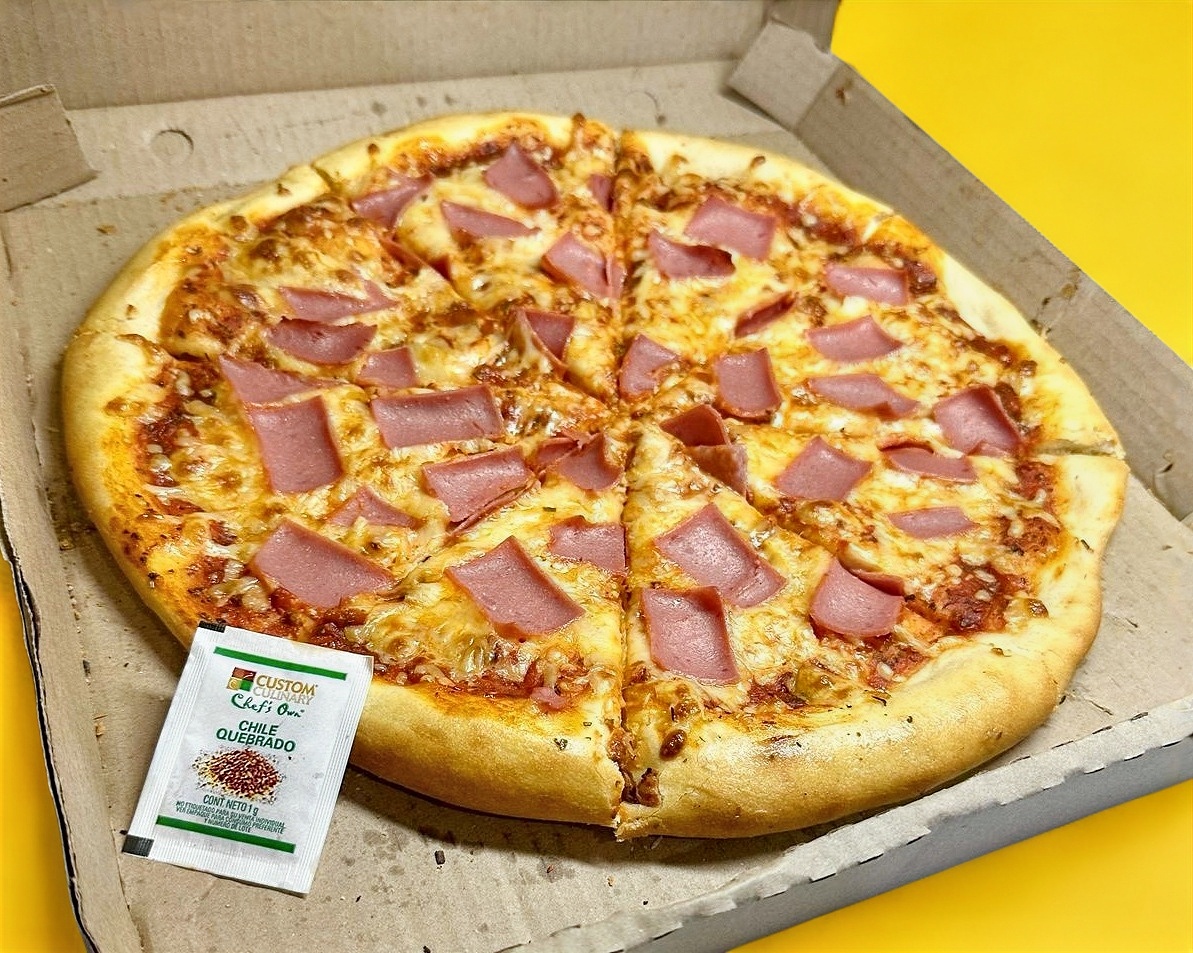 Esponjosa masa de 14", salsa de tomate, queso mozzarella y jamón