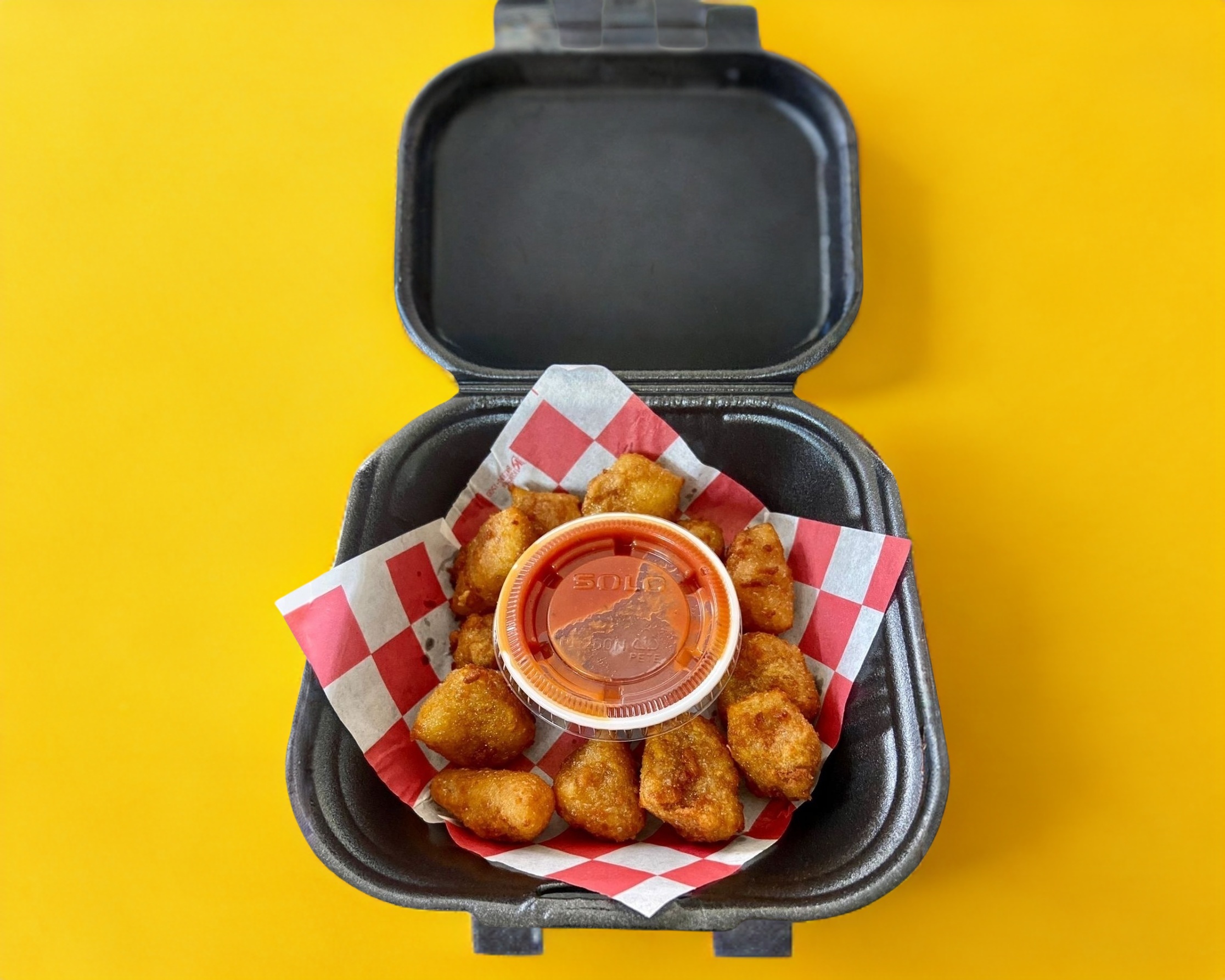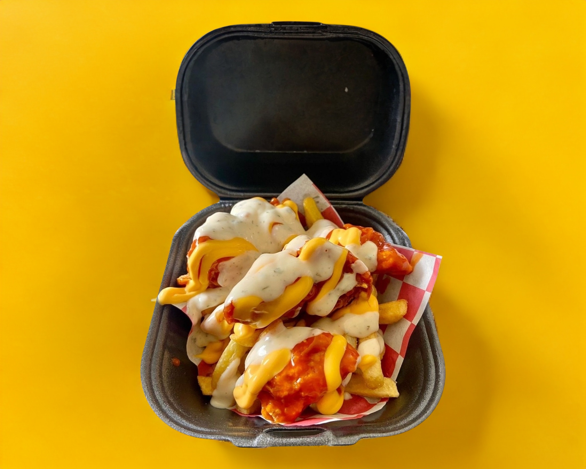 5-6 Boneless en tu salsa favorita y 150 g de papas cubierto con queso cheddar y ranch.