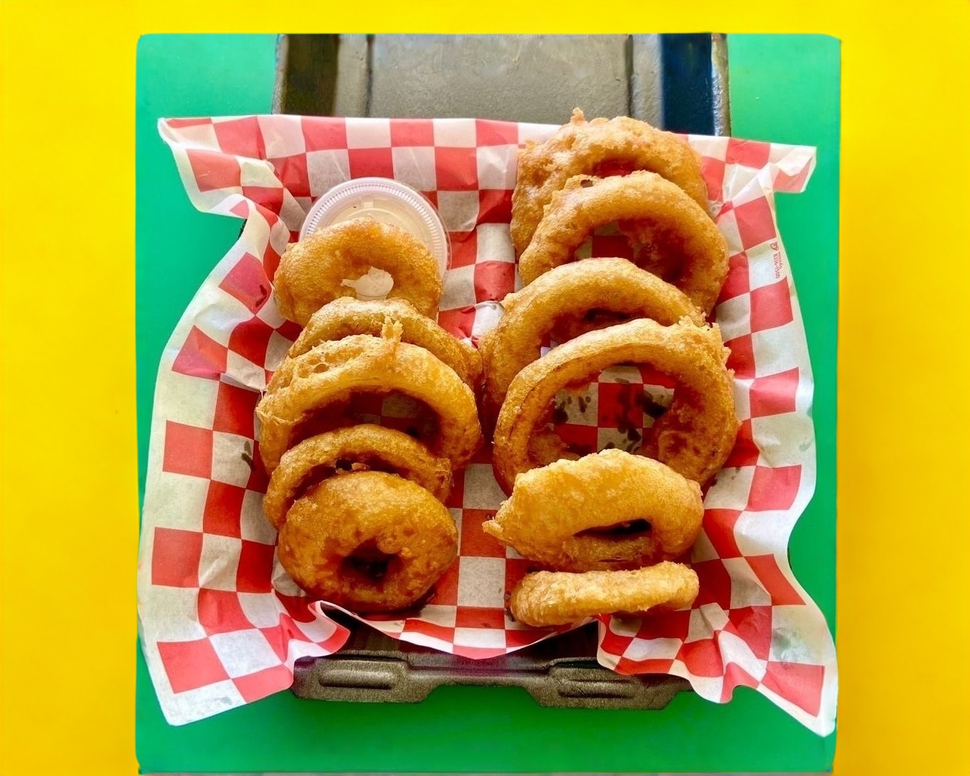 12-13 Aros de cebolla, acompañados de aderezo ranch.