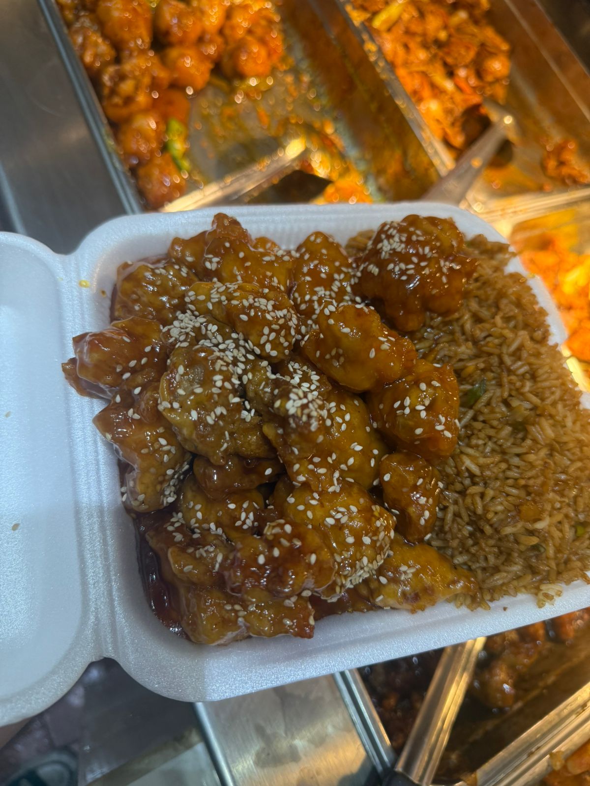 Con 3 guisos a escoger, arroz frito, spaghetti o mixto.
