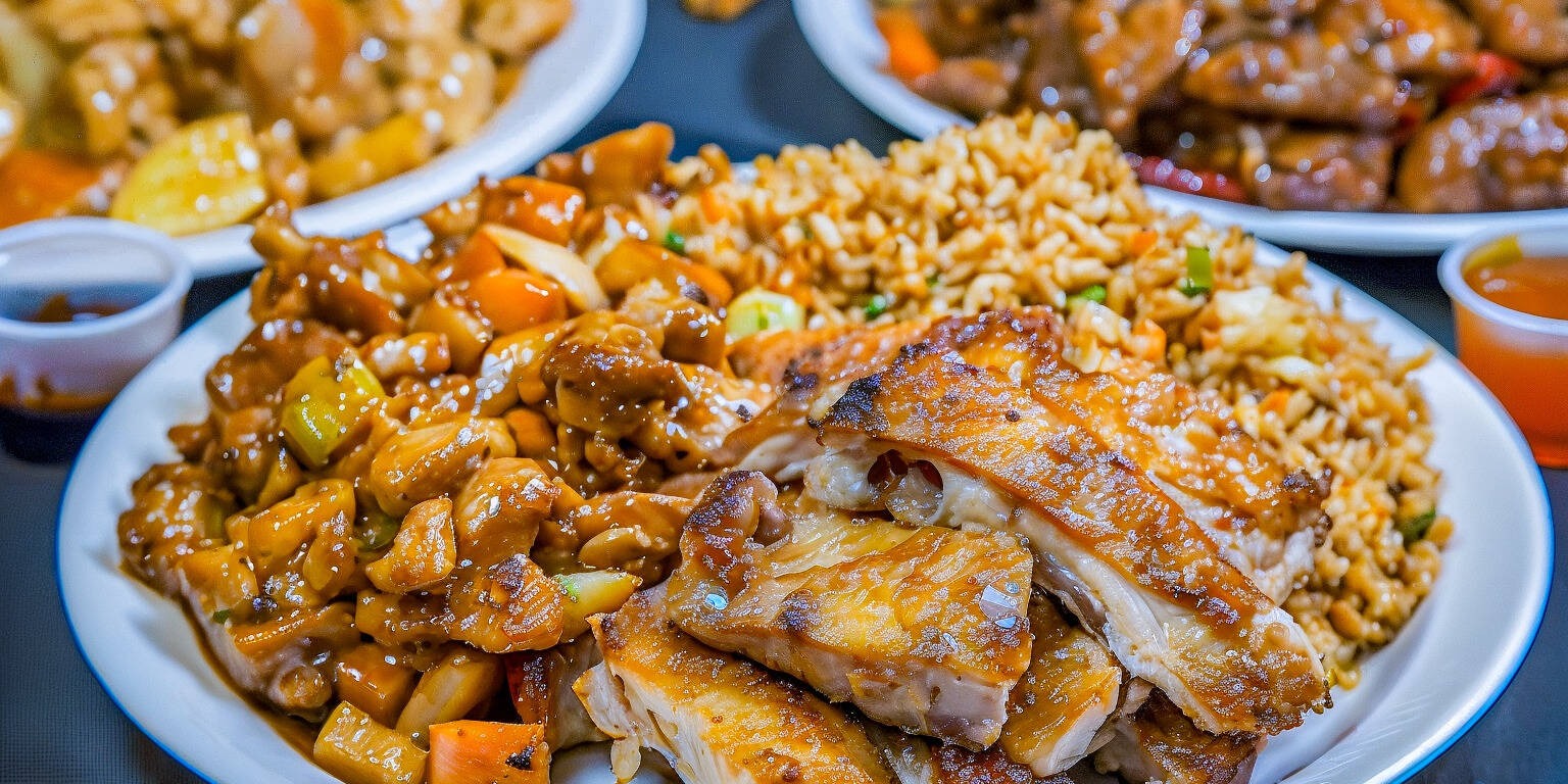 Paquete de 1 guiso con 1 guiso a escoger (pollo agridulce, pollo agridulce picante, bolita de pollo, entre otros), arroz frito, spaghetti o mixto, salsa agridulce y salsa picante aparte.