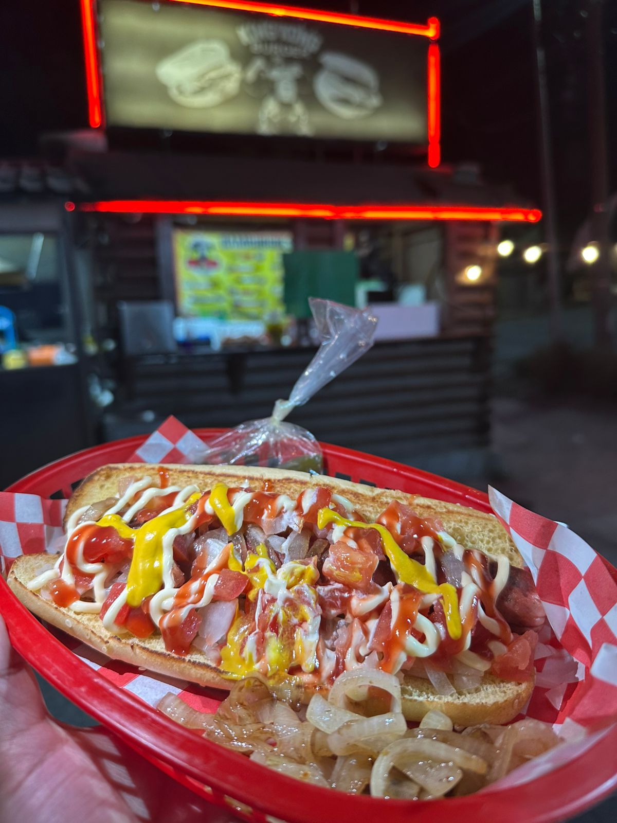 Salchicha salchicha para azar normal, prepáralo a tu gusto con tomate, cebolla, mayonesa, mostaza y aderezos.