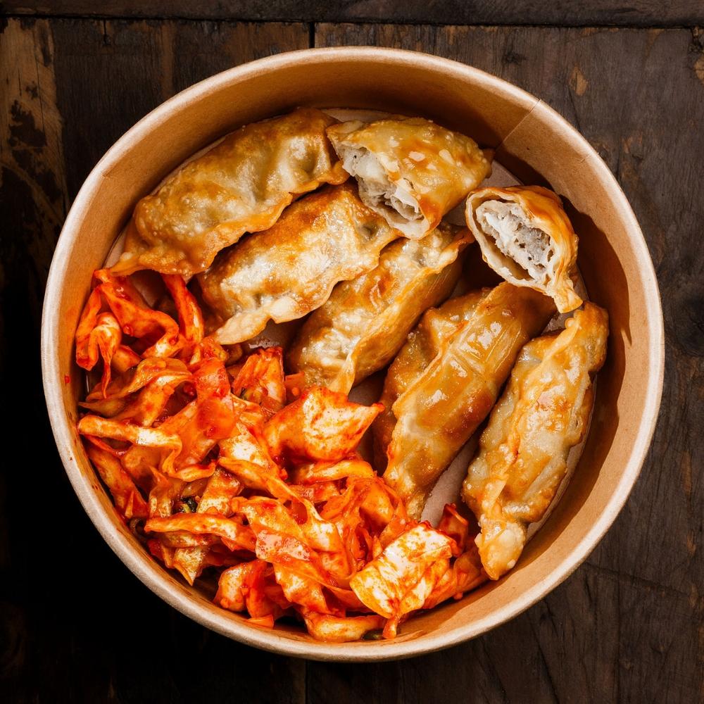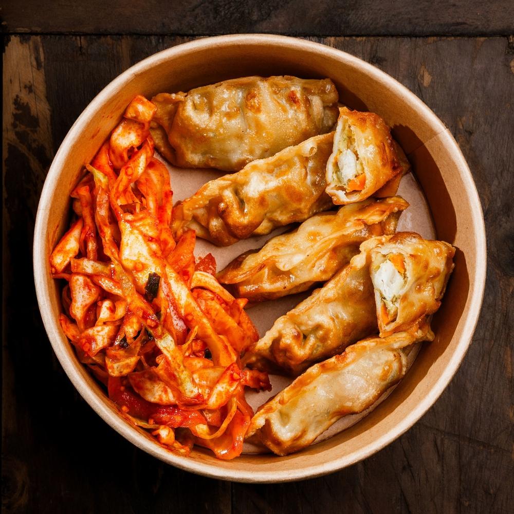 Dumpling coreano relleno de cerdo, frito hasta quedar crujiente , servido con kimchi de repollo. Incluye 1 salsa ORIENTAL CILANTRO