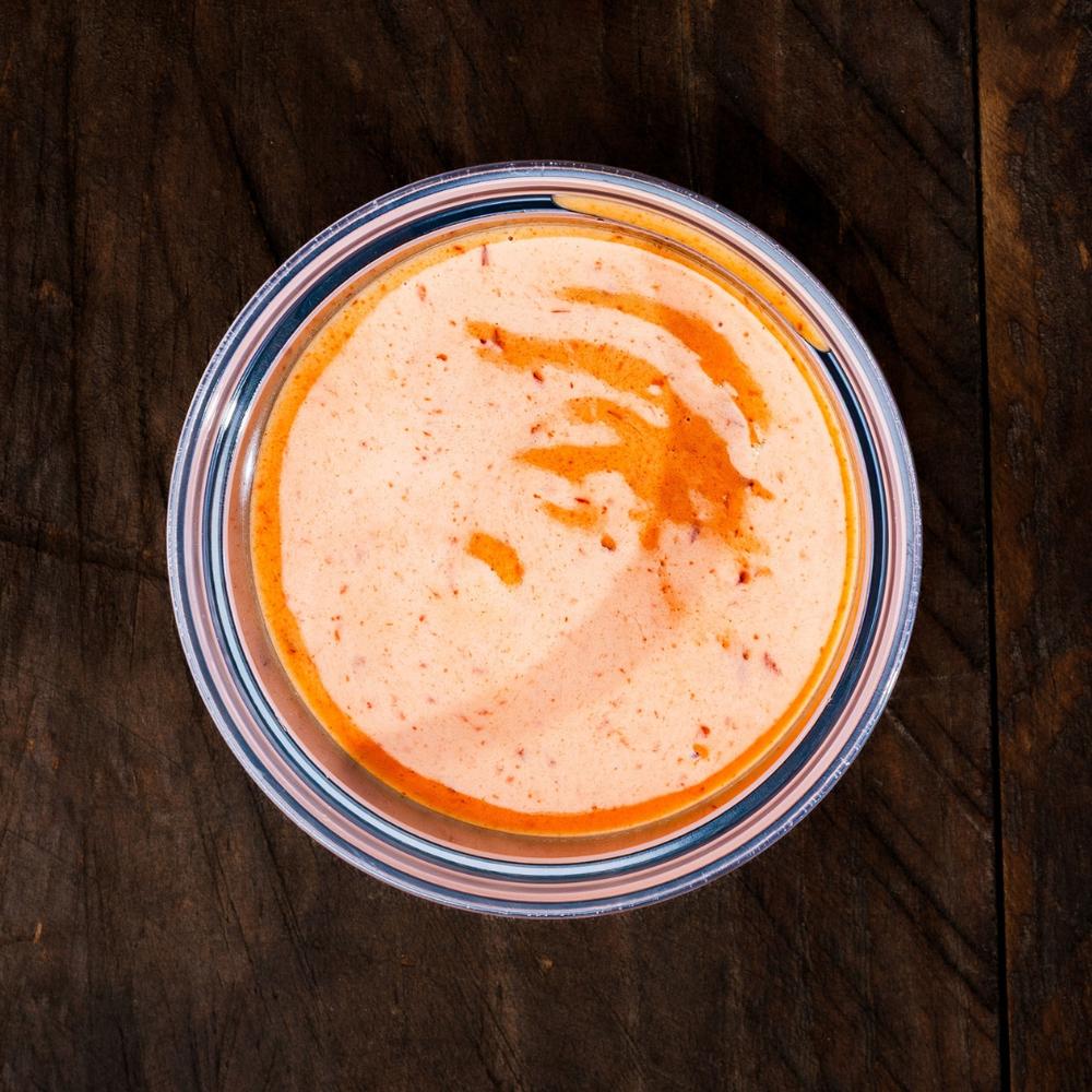 A base de salsa sriracha y mayonesa; ligeramente picante y suave.