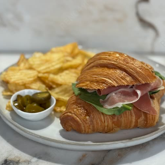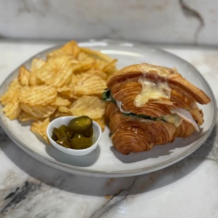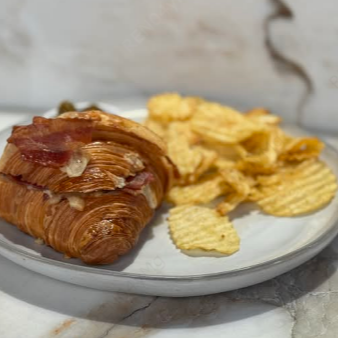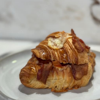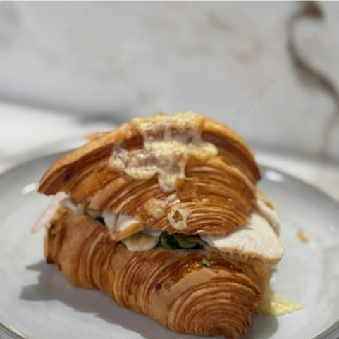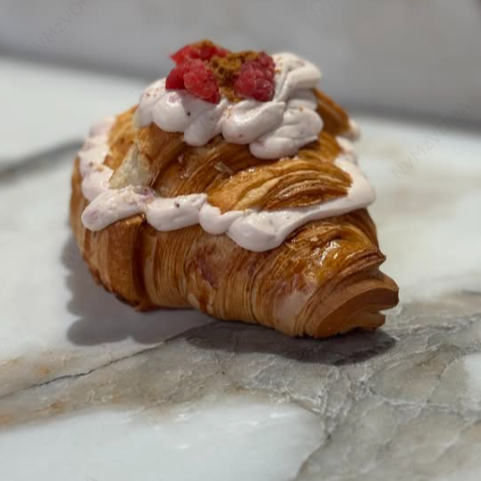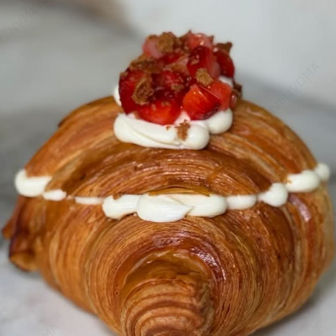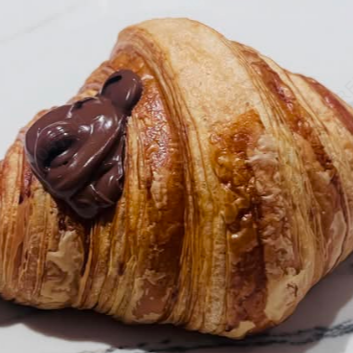 Croissant relleno de crema de cacahuate con mermelada de fresa.