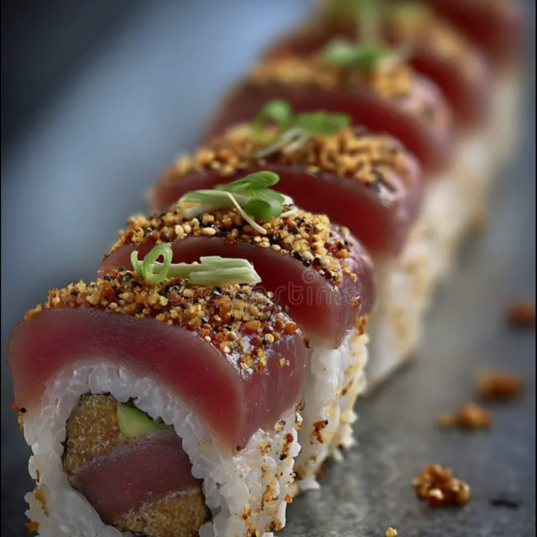 Ingredientes: (camaron, atun por fuera, queso philadelphia, aguacate y pepino)