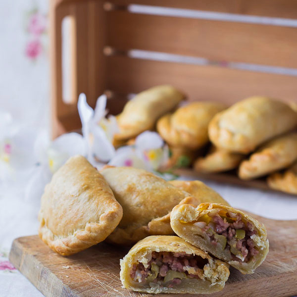 Empanadas de res, jamón con queso, vegetales y queso.