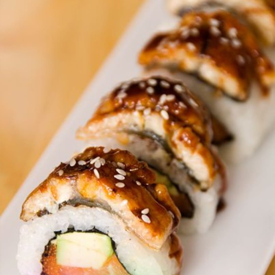 Ingredientes: (anguila, salmon, queso philadelphia, aguacate y pepino)