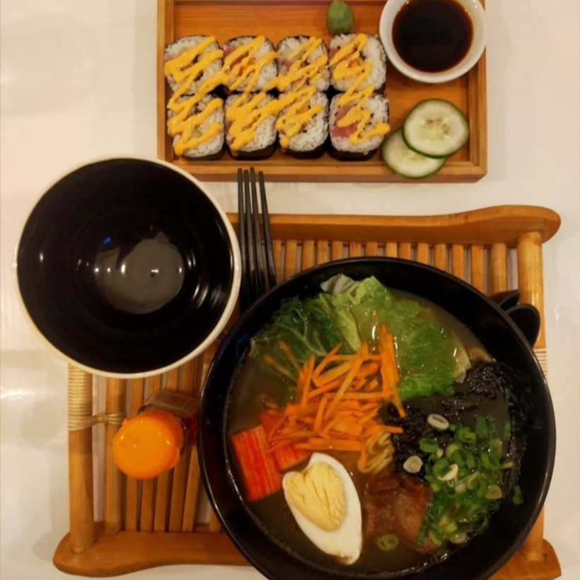 RAMEN (PORK BELLY/ DESHEBRADA/ POLLO)*1 + ROLLO EMPANIZADO A ELEGIR (SOLO COMBO)*1 + AGUA DEL DÍA 1LT*1