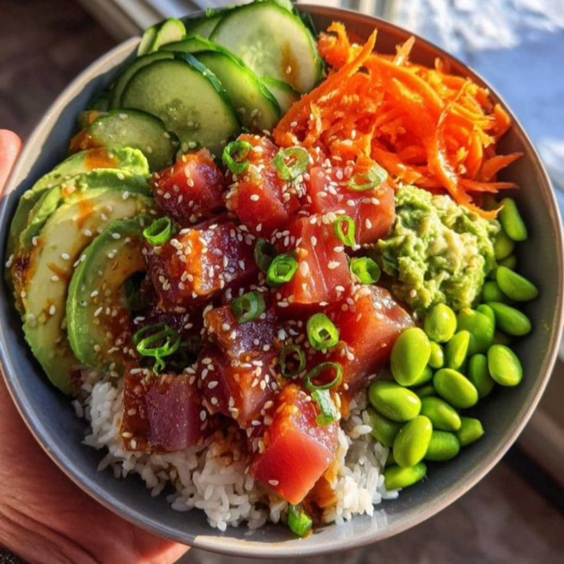 Ingredientes: atún, queso philadelphia, aguacate y pepino