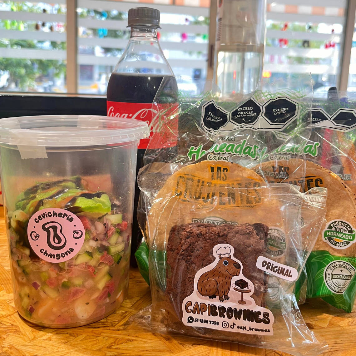 1/2 litro de ceviche a elegir, mas complemento, mas bebida, mas capibrownie