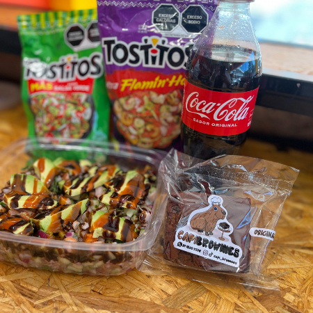Ceviche a elegir, mas bebida, mas capibrownie.
