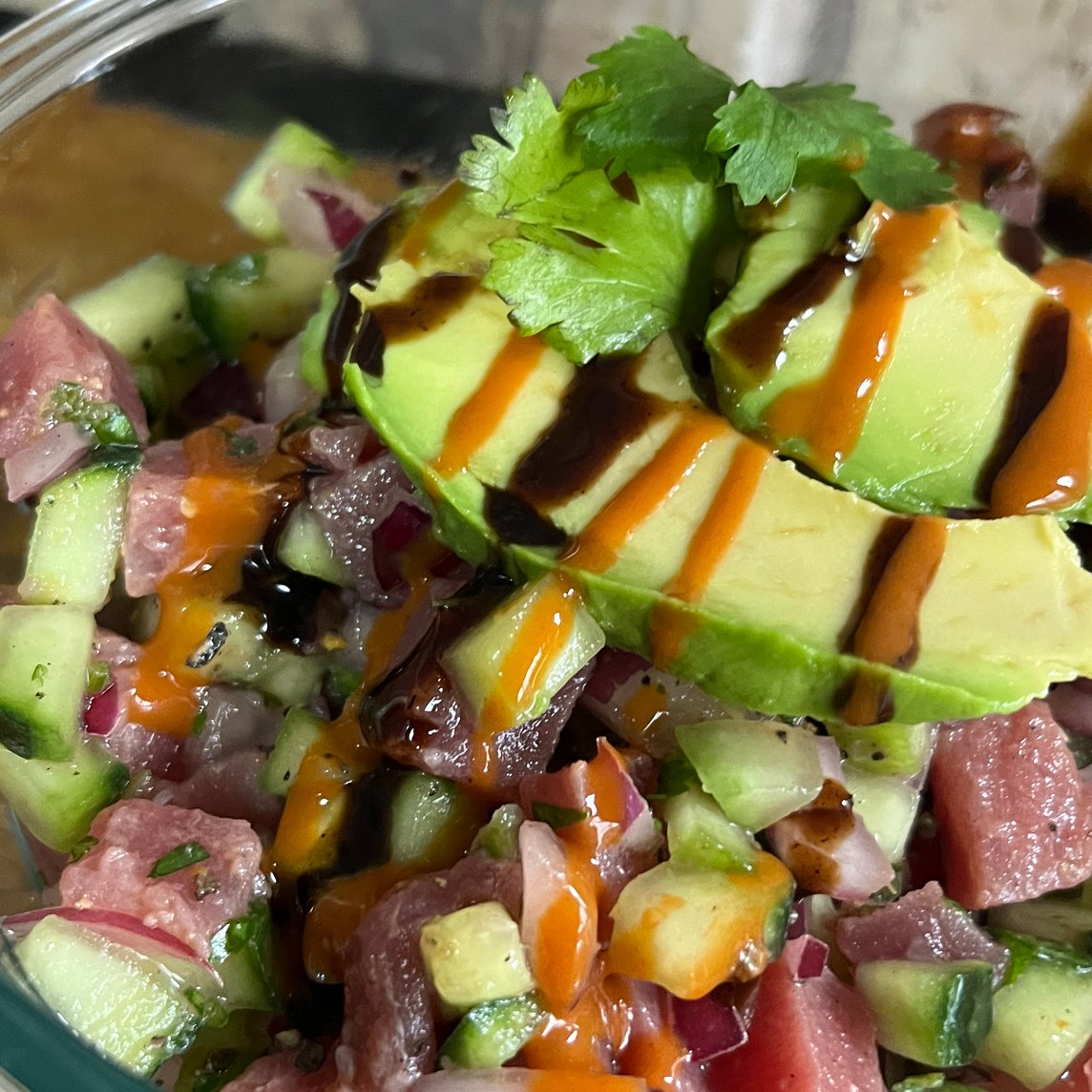 Ceviche chingón de medallón de atún, para compartir con la familia o los compitas. Coronado con aguacate y bañado con nuestras salsitas chingonas.