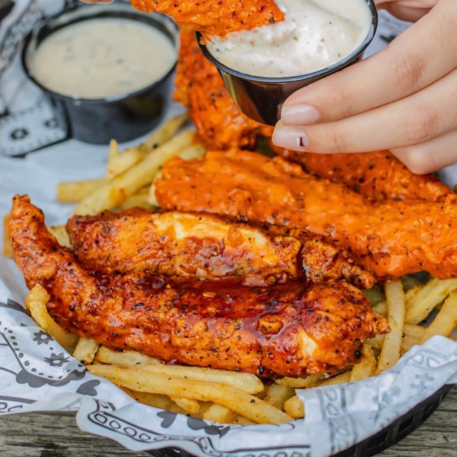 Orden de tiras (520gr) papas a la francesa y aderezos a elegir