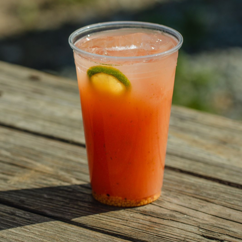 Bebida refrescante a base de fresa, tamarindo, jugo de naranja y chamoy