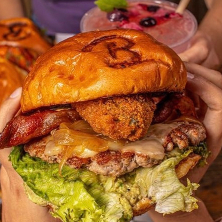Incluye papas a la francesa) pan brioche, guacamole, carne de res, queso suizo, tocino hecho en casa, aderezo mayochipotle, cebolla asada, lechuga y por ultimo un chile jalapeño empalizado y relleno de queso crema y pulled pork.