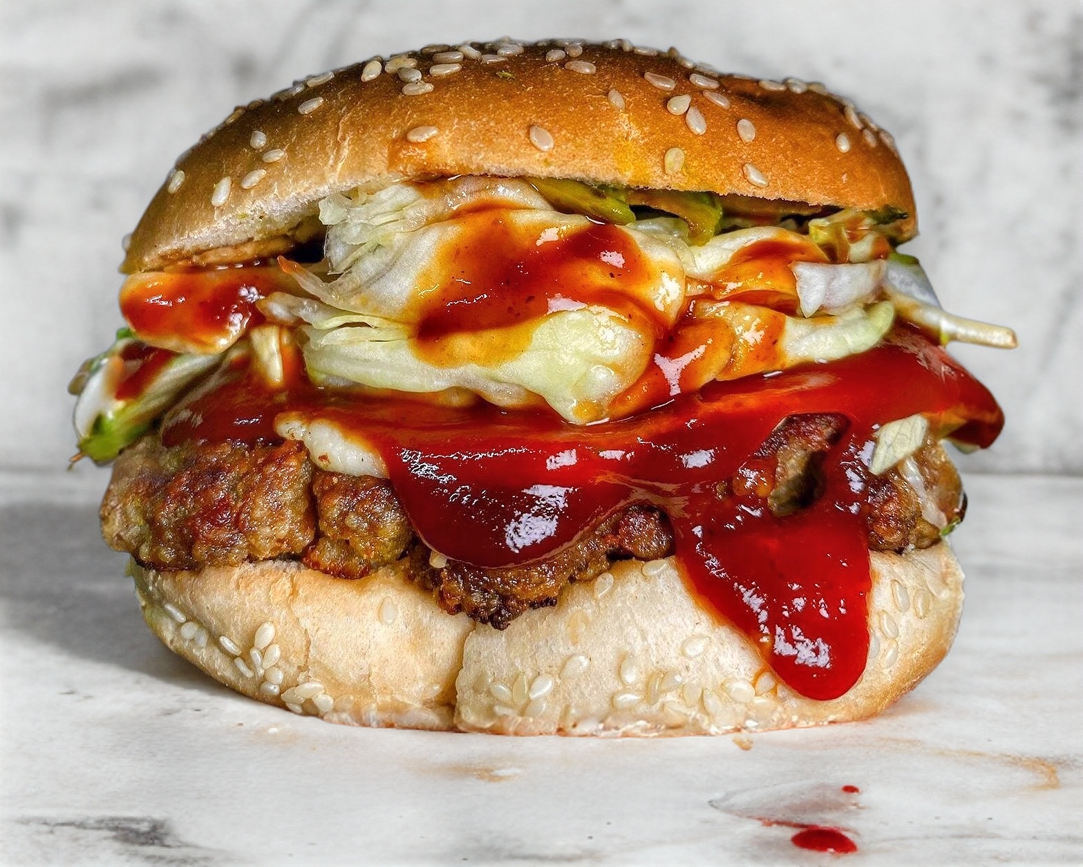 1 Carne 150 gr., queso, jamón salsa BBQ aguacate tomate lechuga y aderezos.