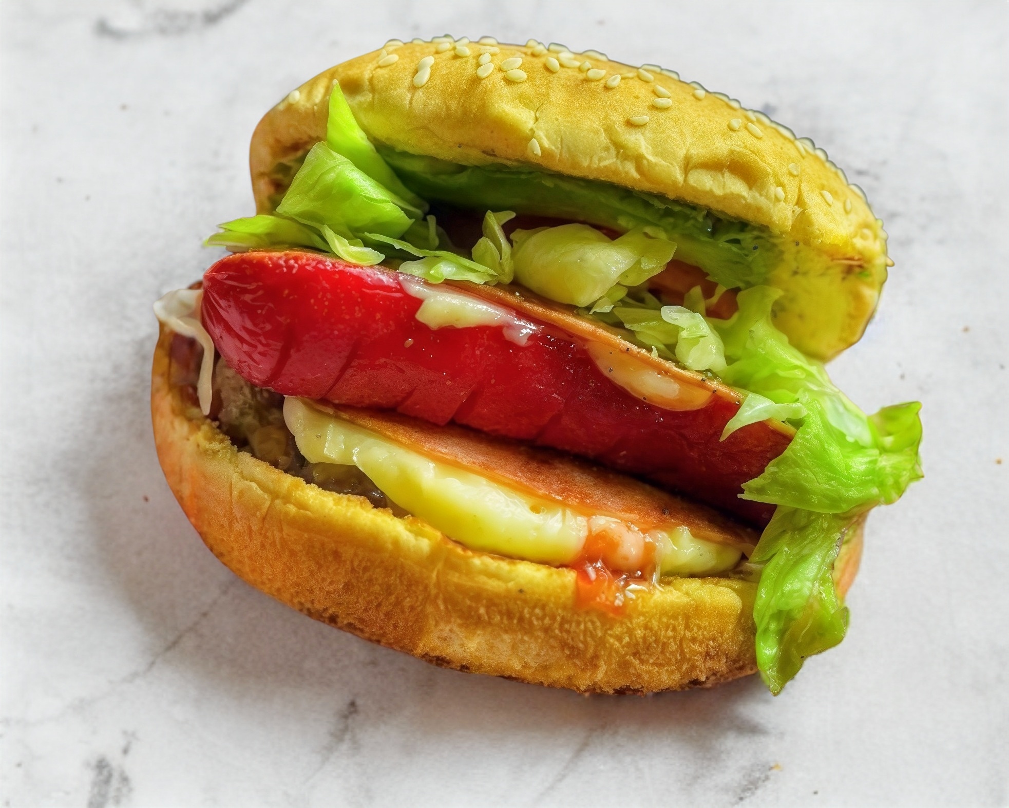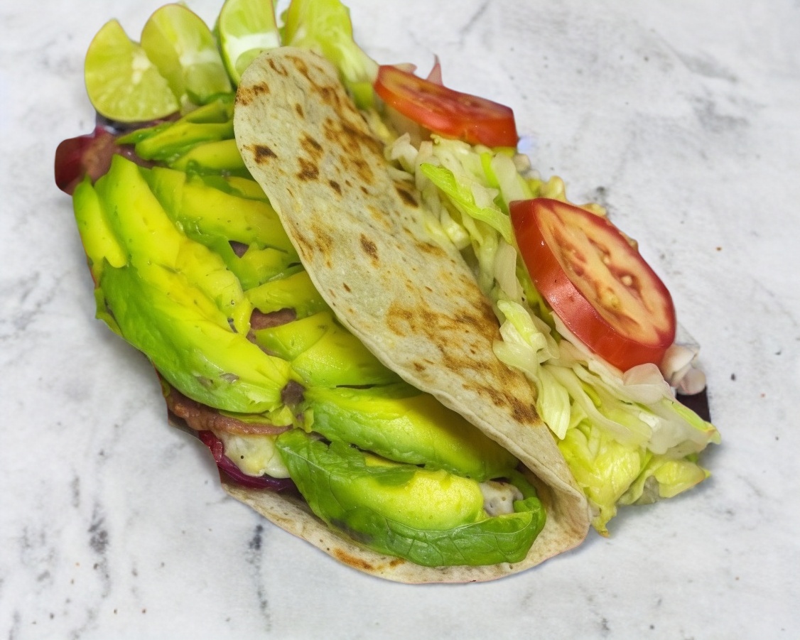 Salchicha, queso, jamón aguacate tomate lechuga y tortilla de harina.