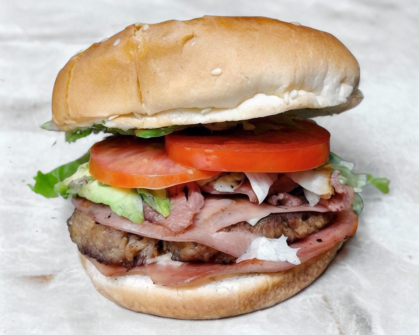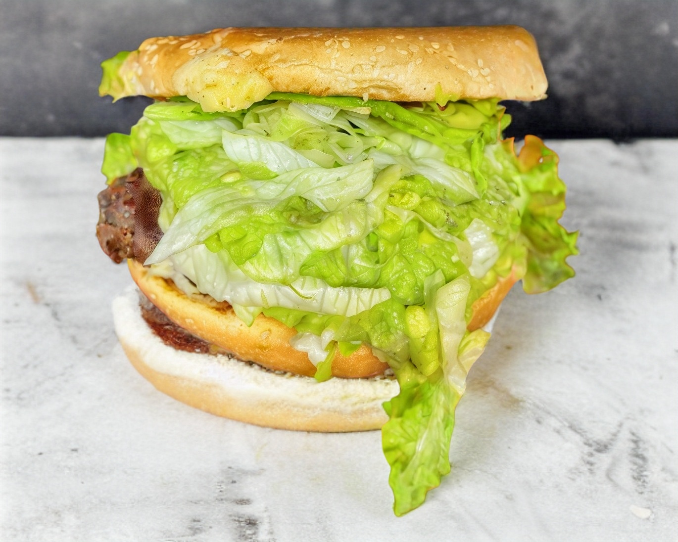 1 Carne 150gr., queso jamón aguacate tomate lechuga y aderezos.