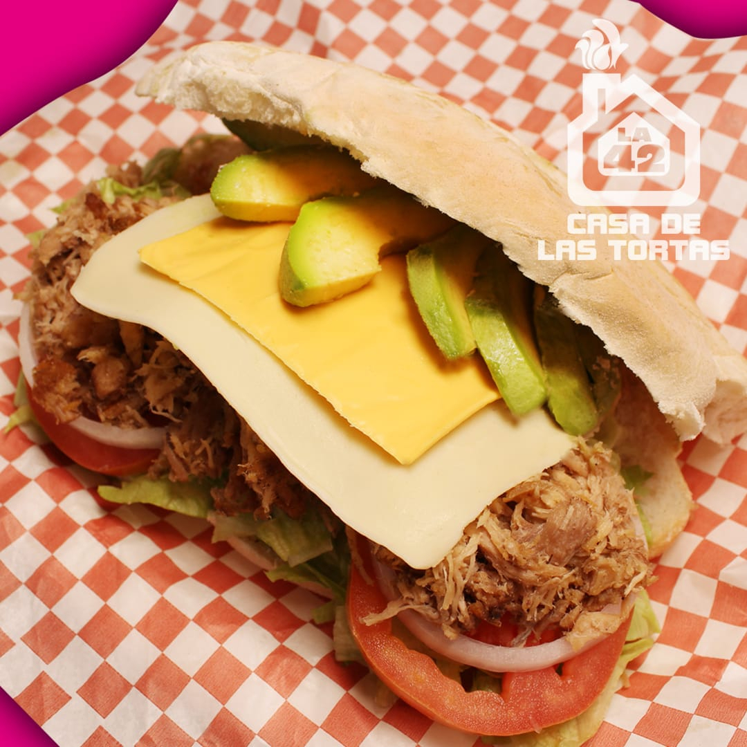 Carne de puerco con salsa especial de la casa (no habanero). Incluye lechuga, tomate, cebolla y mayonesa.