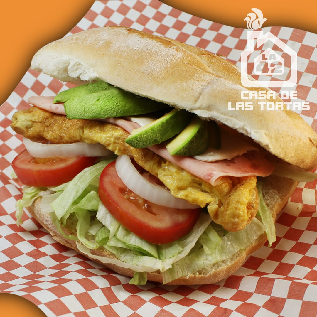 TORTA OAXAQUEÑA,HUEVO EN TORTA,QUESO PANELA,JAMON,LECHUGA,AGUACATE,CEBOLLA,TOMATE Y MAYONESA