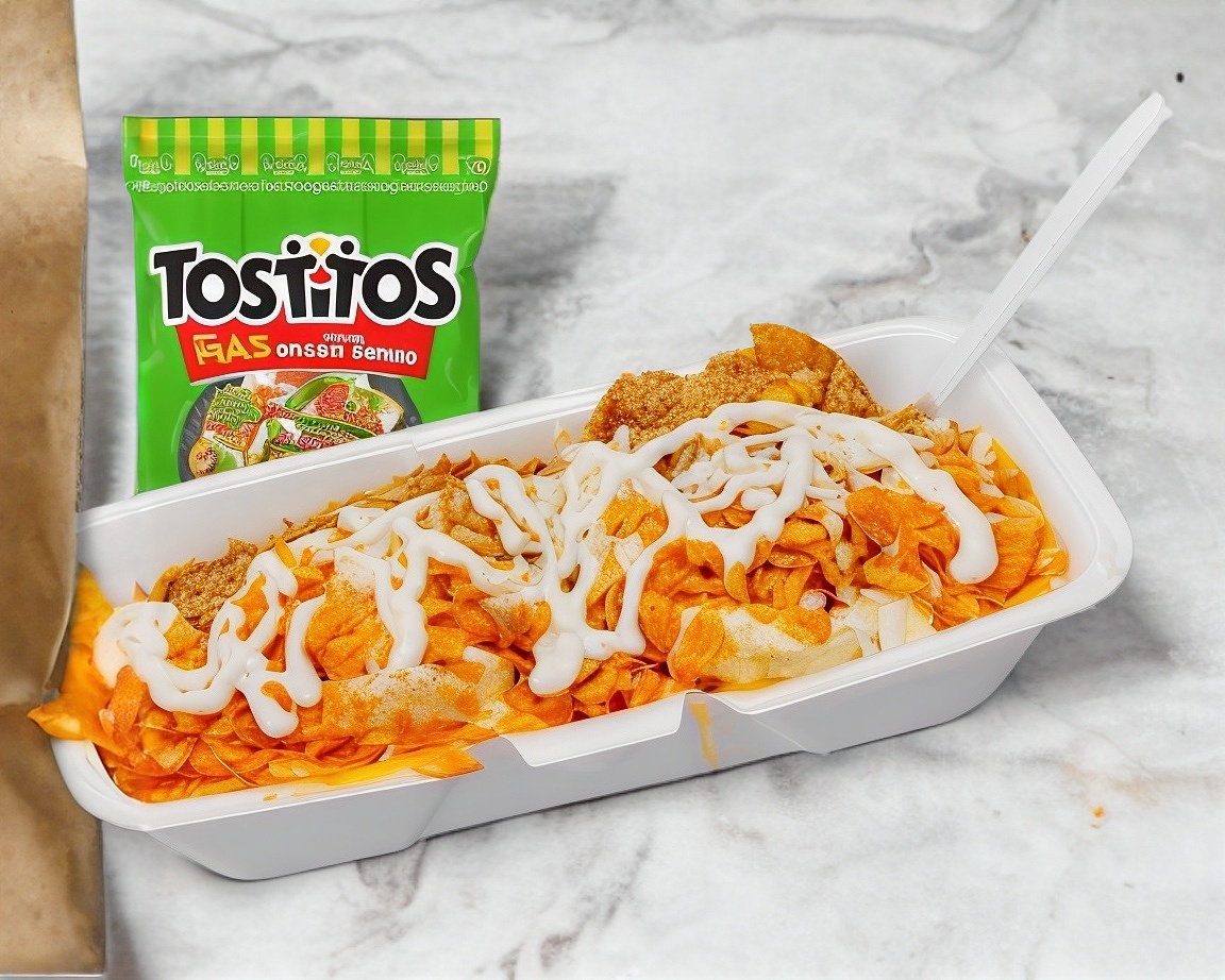 Tostitos flamin hot con elote y todos nuestros ingredientes.