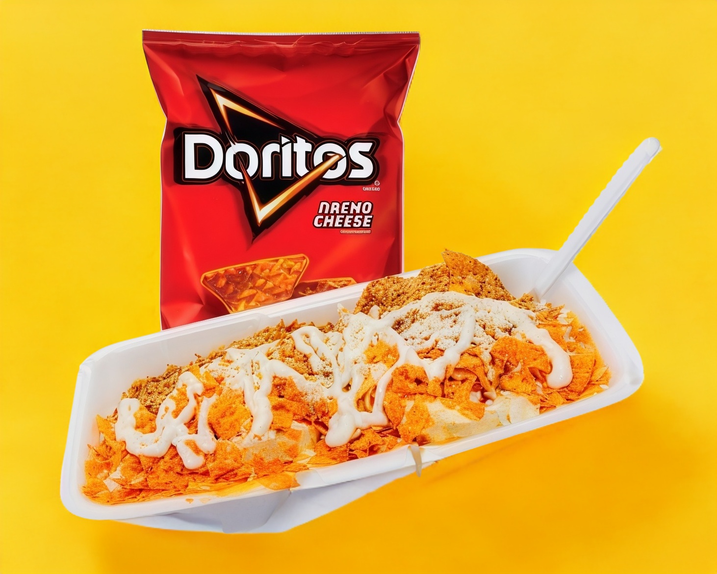 Doritos con Elote, con mayonnesa,queso amarillo cheddar caliente,chipotle,chile,queso blanco,cacahuate y ruffles.