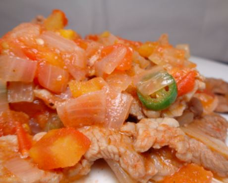 Pierna de puerco cocinado a vapor y guisada con chile...