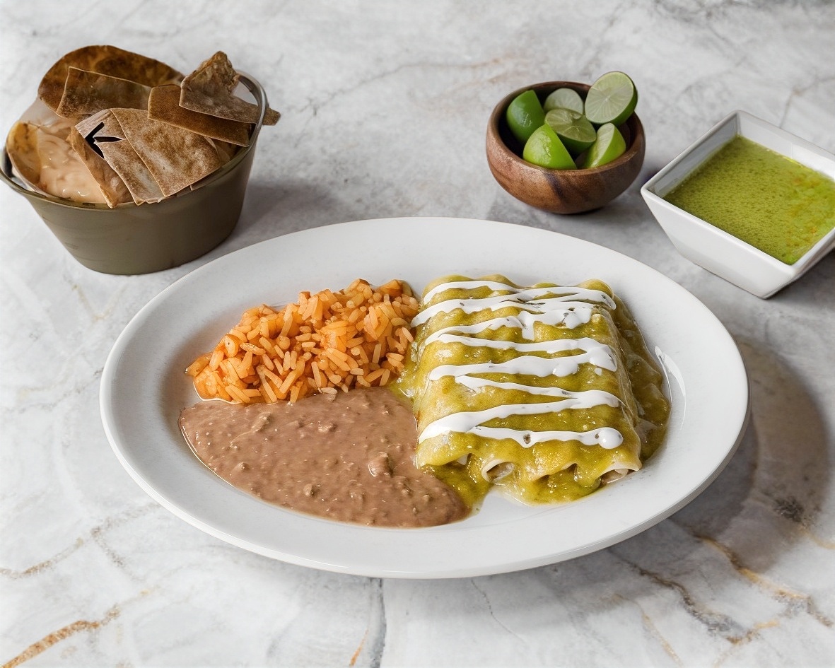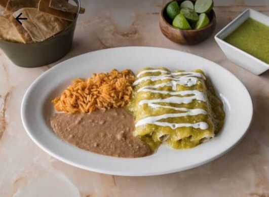 Enchiladas Suizas.*1 + Caldo de Res (Guarnición Chica)*1