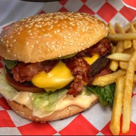 Lleva carne de res, queso americano, aros de cebolla, tocino frito, salsa BBQ, aguacate y aderezo.