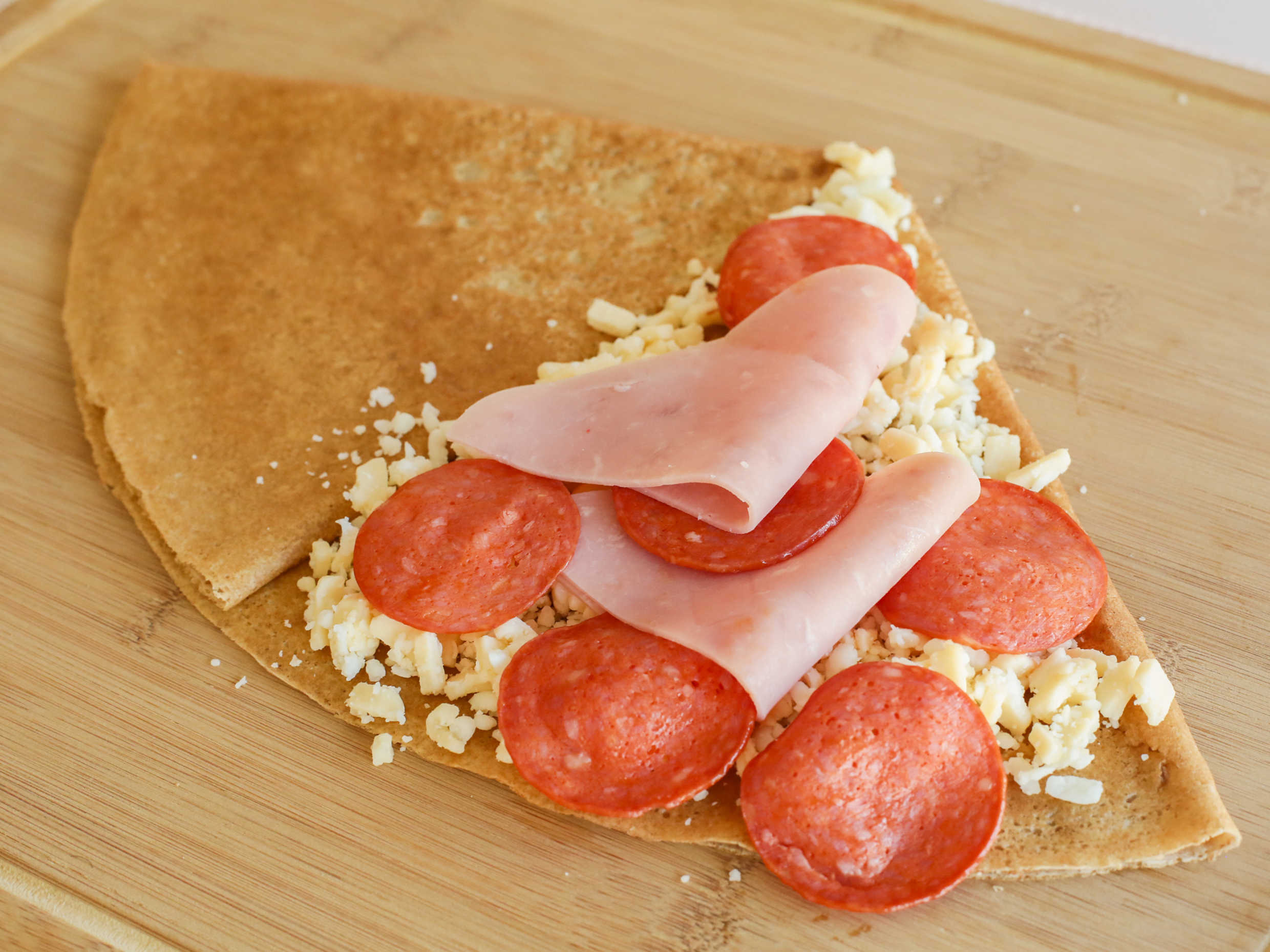 Crepa de Queso Manchego con Jamón y Pepperoni