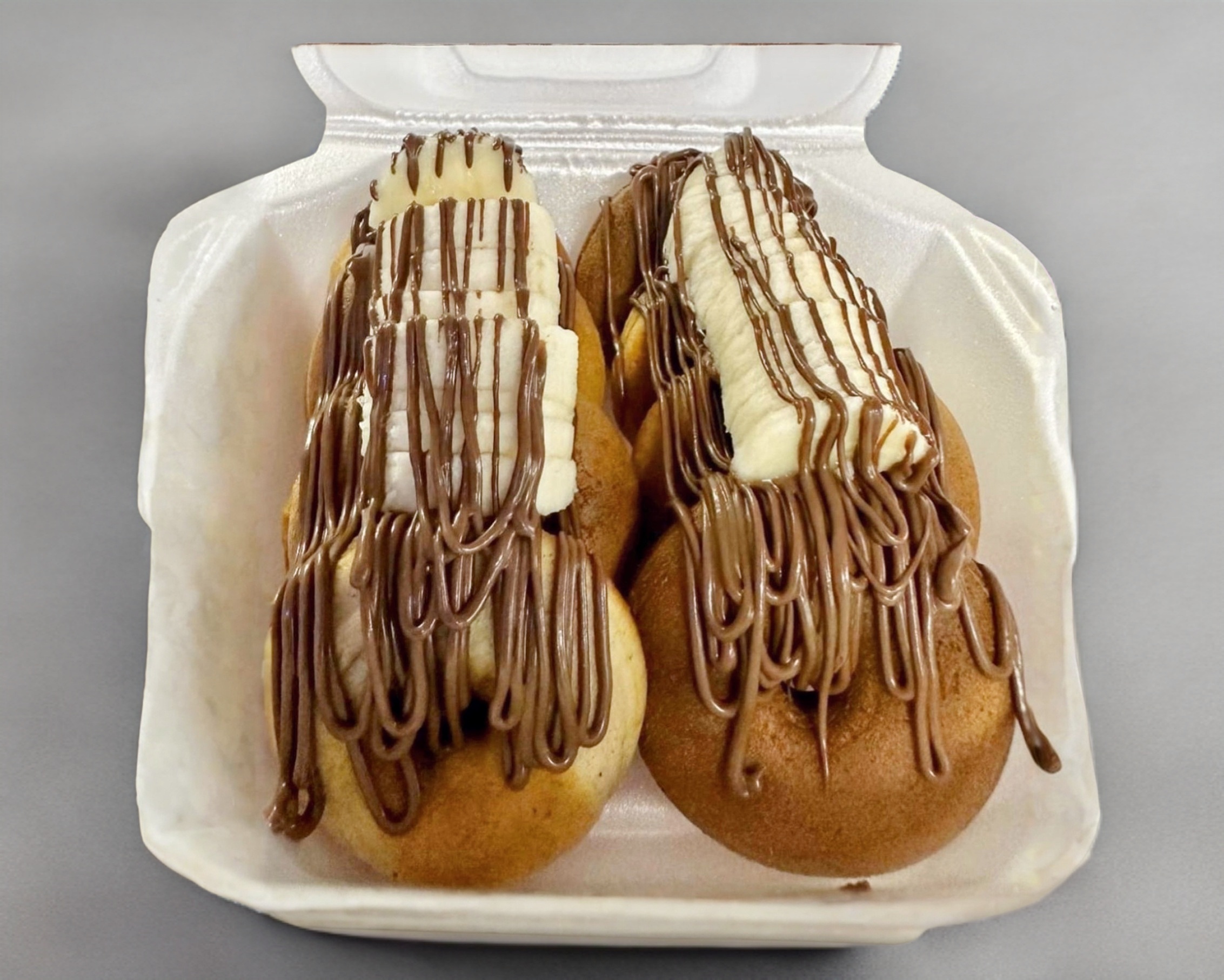 Te incluye 3 bolas de nieve, plátano, chocolate líquido, crema batida y cerezas.