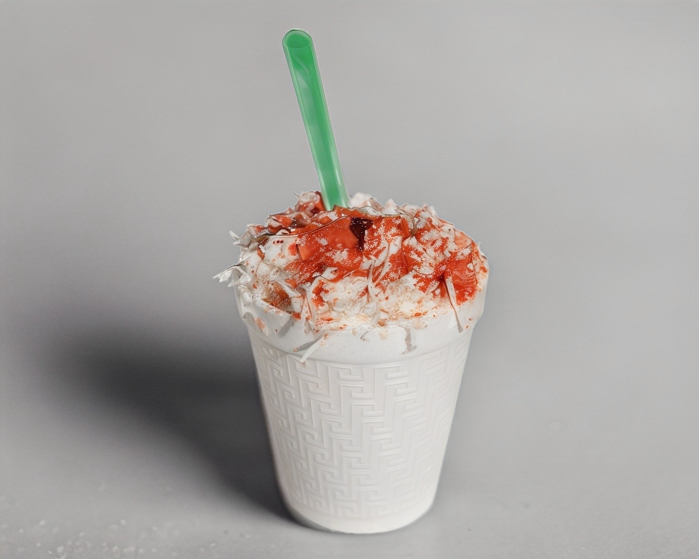 Bebida fría, mezclada con hielo y servida con una textura espumosa. Ideal para refrescarse en días calurosos.