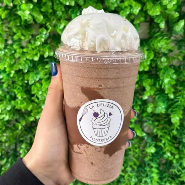 Deliciosa malteada de chocolate acompañada de crema batida.