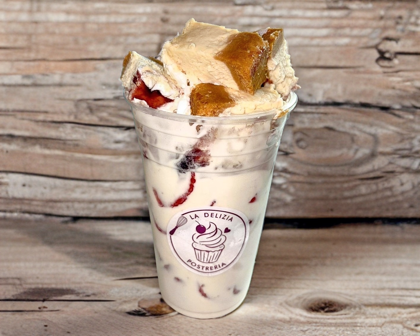 Deliciosa malteada de vainilla acompañada con crema batida.